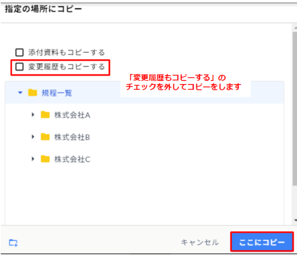 1.規程一覧上の協定届を右クリックから「指定の場所にコピー」へ進み、