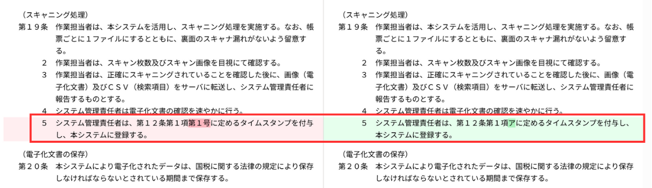 ※採番スタイル「(1)(2)(3)」⇔「①②③④⑤」の変更の場合は差分として認識されません。