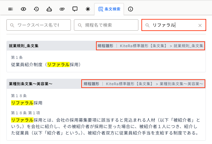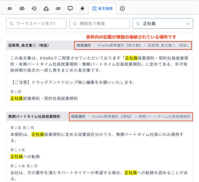 検索例:KiteRa標準雛形【規程】で賃金規程を検索したい場合