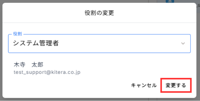 - 自分自身の役割変更は、メインワークスペースの「管理者」「システム管理者」のみ可能です。