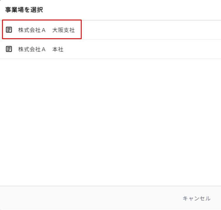 2. 出てくる事業場のリストから、該当の事業場を選択