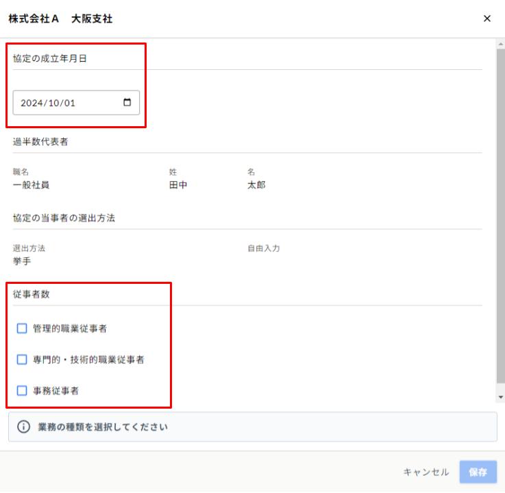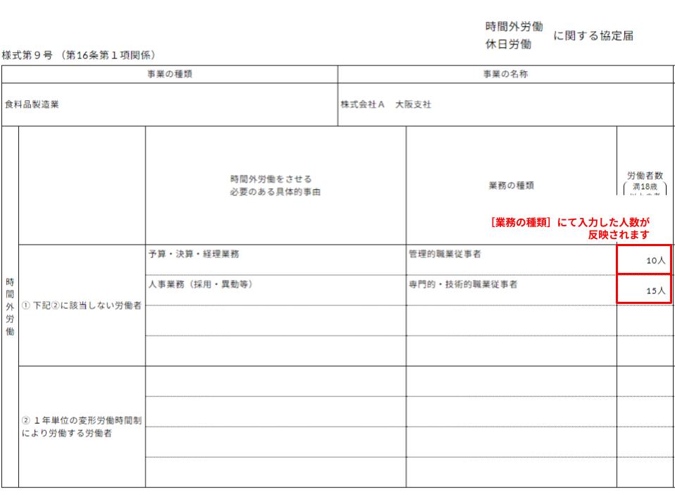 Q.36協定届の業務ごとの労働者数はどこで入力すればいいですか?