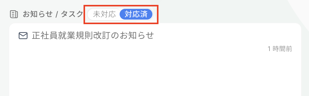 対応が完了したお知らせ/タスクは[対応済]に移動します。