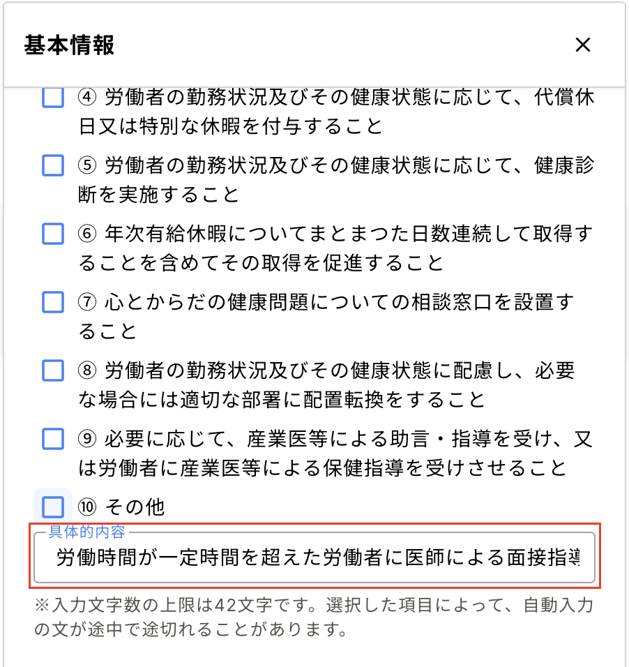 Q.36協定届の「限度時間を超えて労働させる労働者に対する措置」の「具体的内容」欄の文字数制限を超えてしまう場合、どうしたらいいですか?