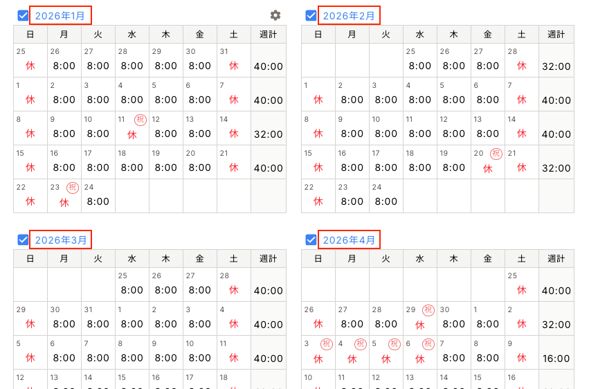 Q.1年変形カレンダーに表示される各月を変更できますか?