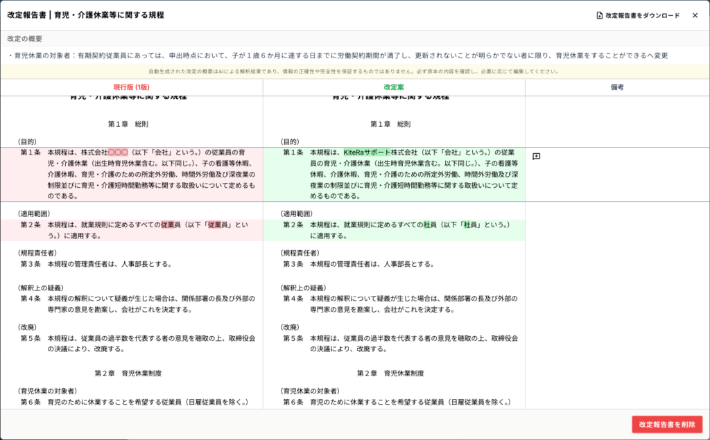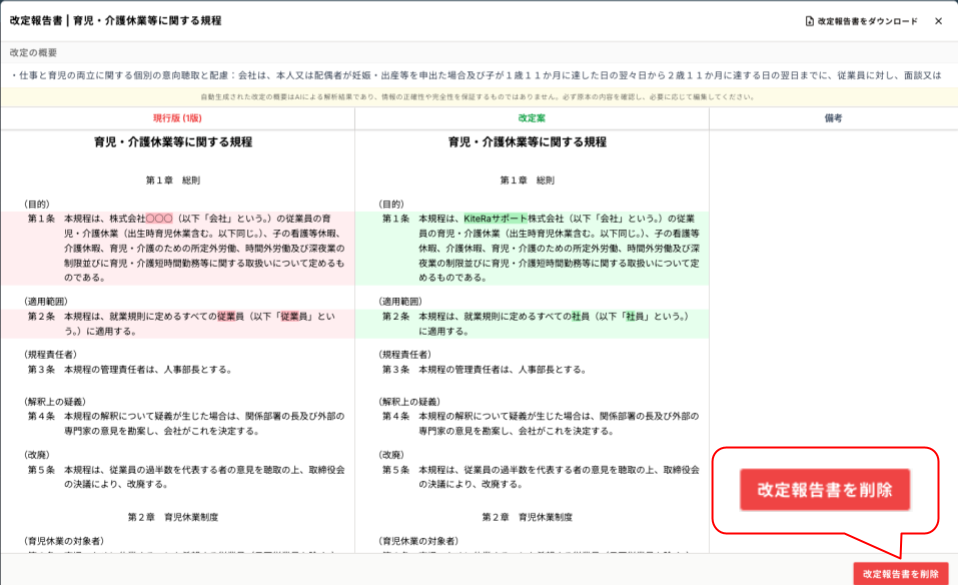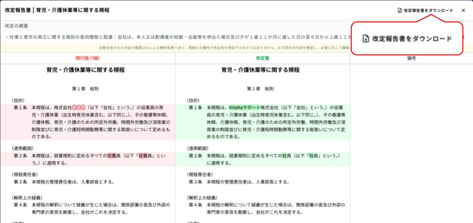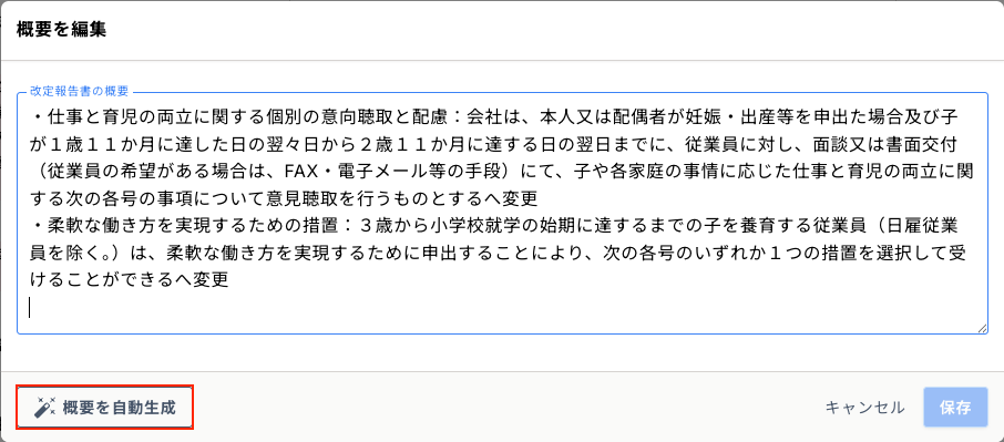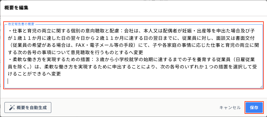 改定の概要をAIで要約することも可能です。