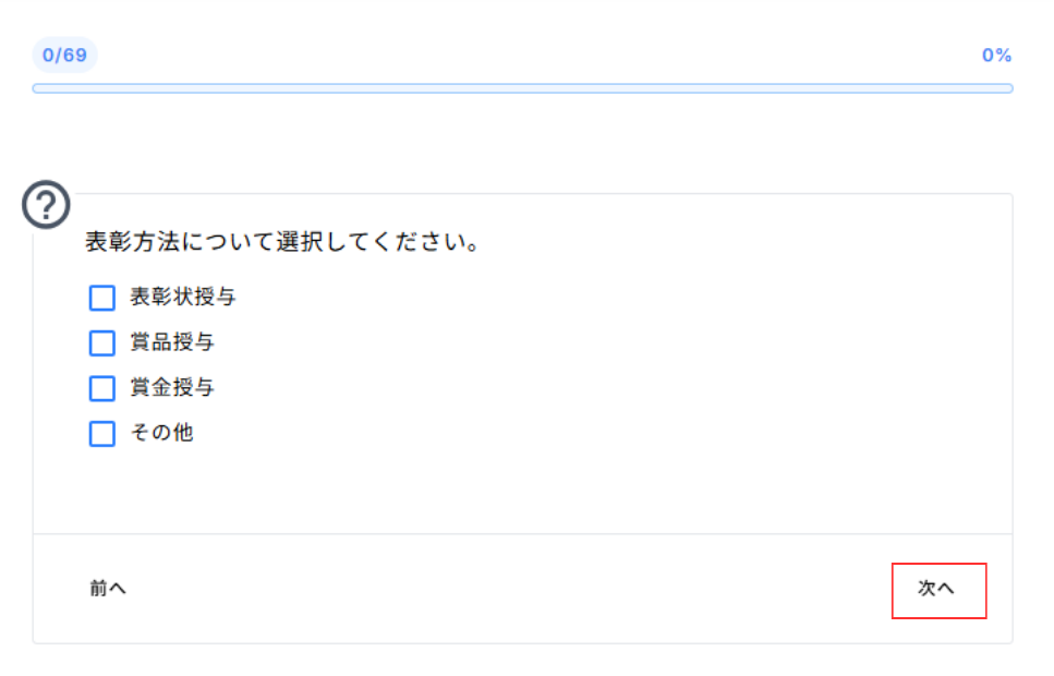 該当しない・不要な設問には回答せずに[次へ]をクリックしてください。