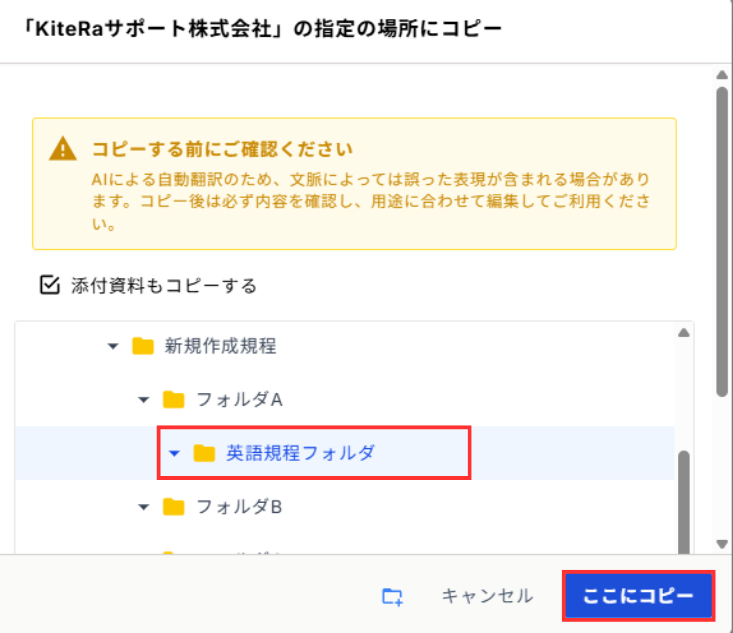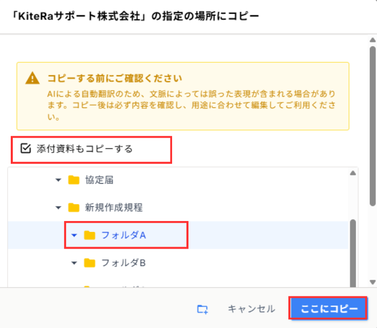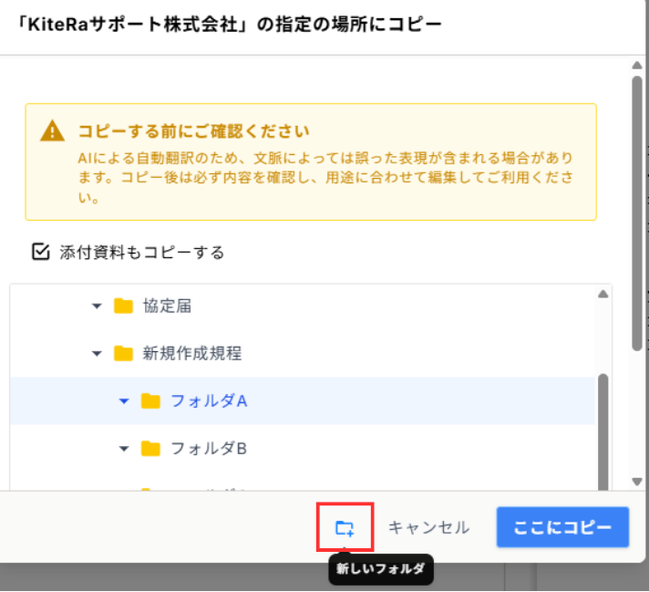 規程のコピーの際に新しいフォルダを作成することが可能です。