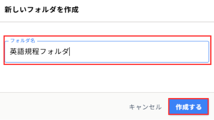 5. [フォルダ名]を入力し、[作成する]をクリック