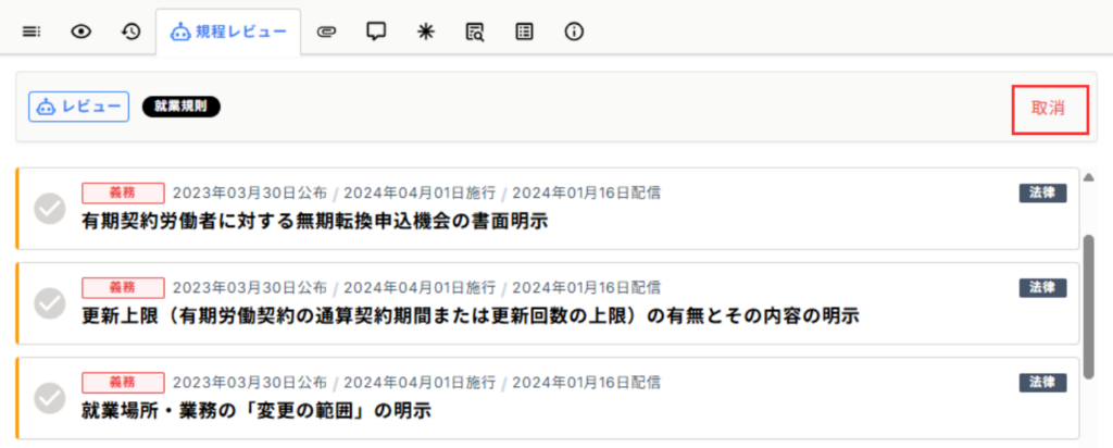 ※レビュー種別が「就業規則」のみ、各記載事項が表示されます。