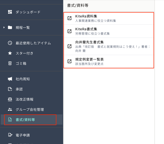 KiteRa Bizでは雇用契約書などの社内様式の雛形、書式、労使協定例や資料集をご用意しております。