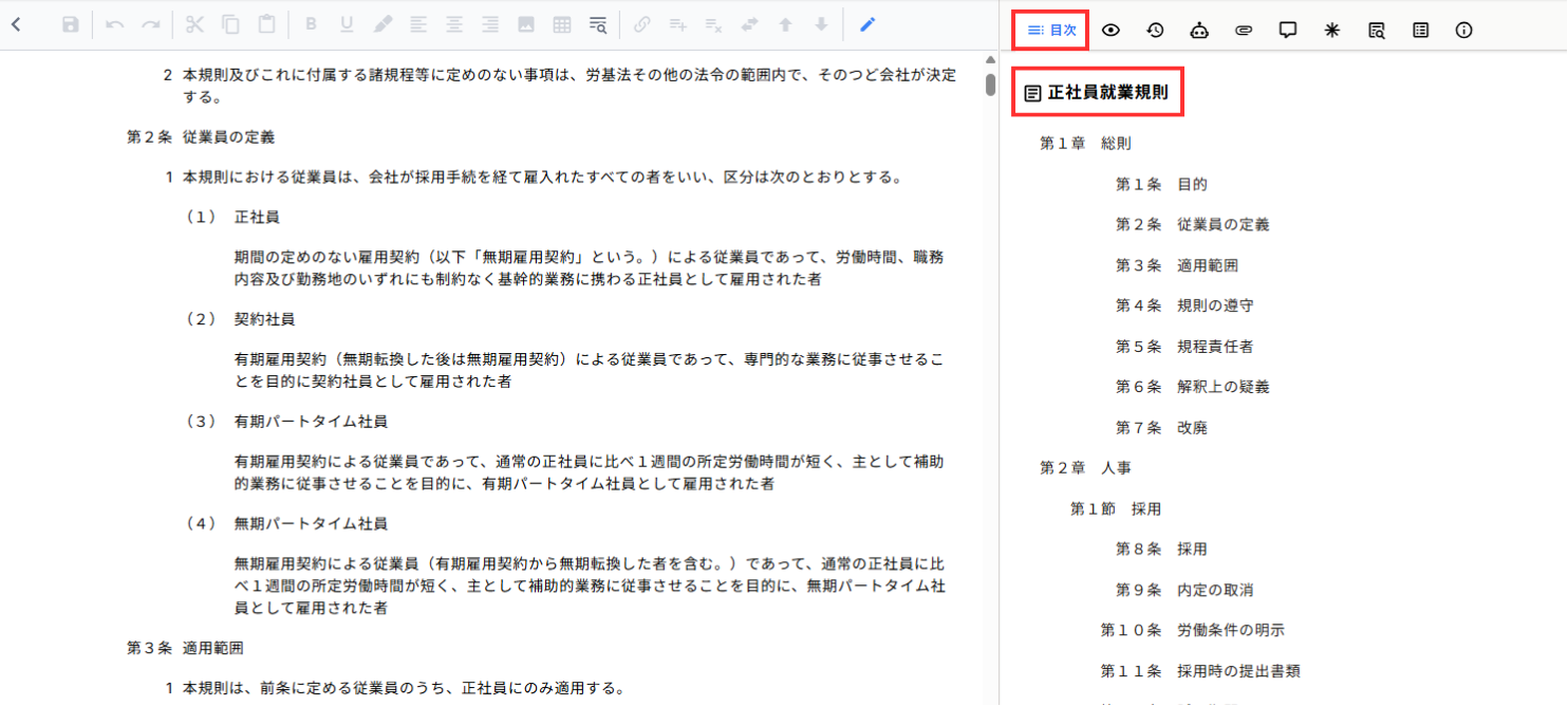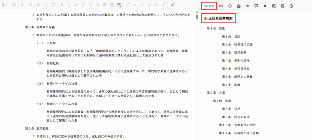 条文を追加・削除した場合、目次にも自動で反映されるため手直しをする必要がありません。