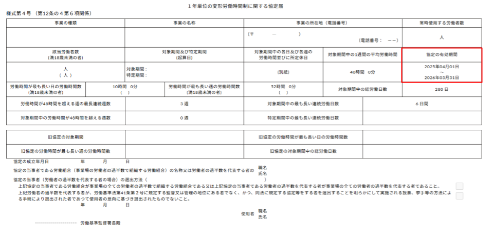 ※「特定期間」は、対象期間のうち特に業務が繁忙な時期として定める期間であり、任意項目となります。