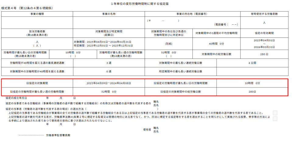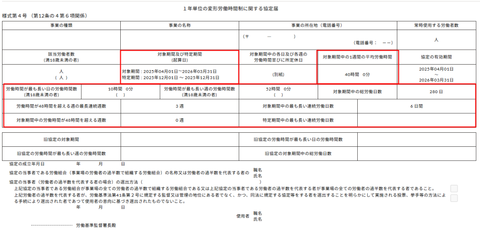 3. 協定届作成画面に切り替わるので、各項目を入力