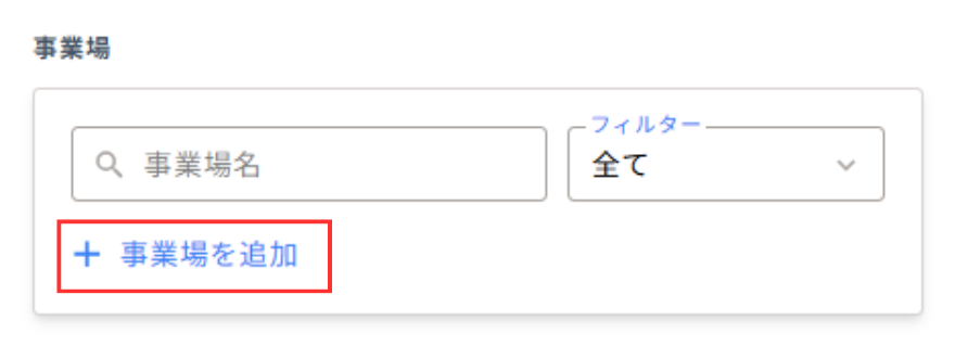 追加した事業場は、「事業場名」欄と「フィルター」で絞り込むことが可能です。
