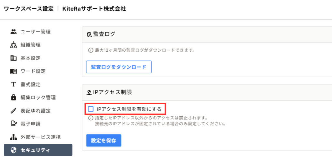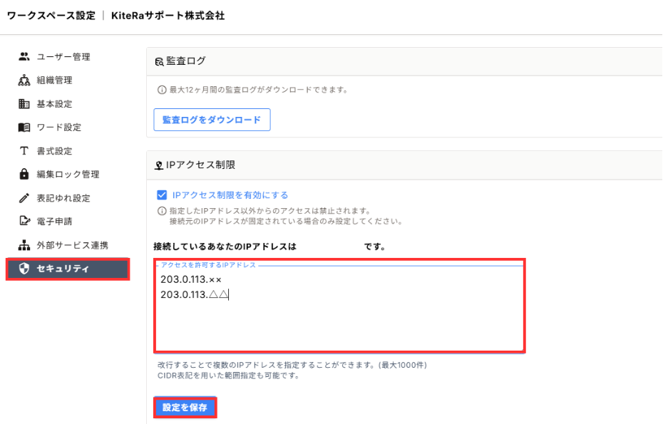 IPアドレス単位でKiteRaへのアクセスを制限できます。