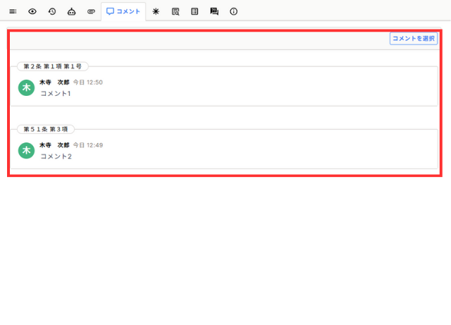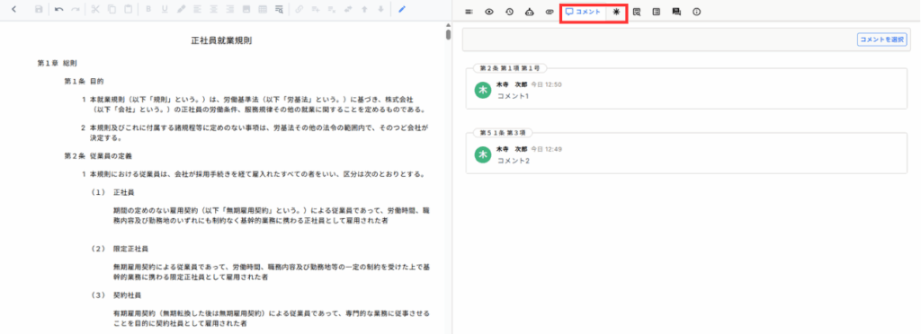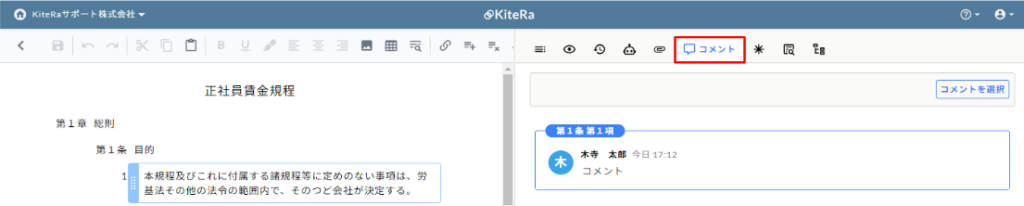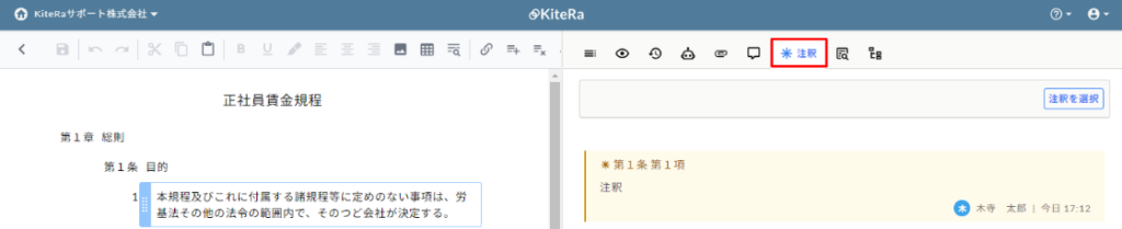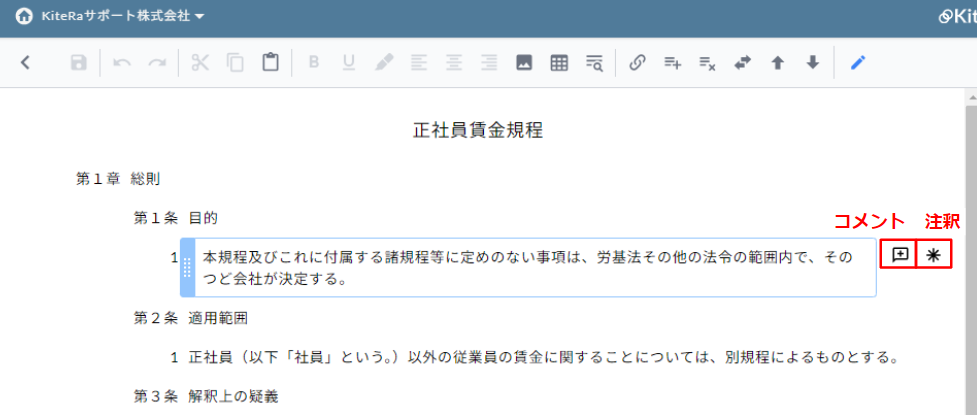 コメント/注釈は、規程の条文にテキストを入力できる機能です。