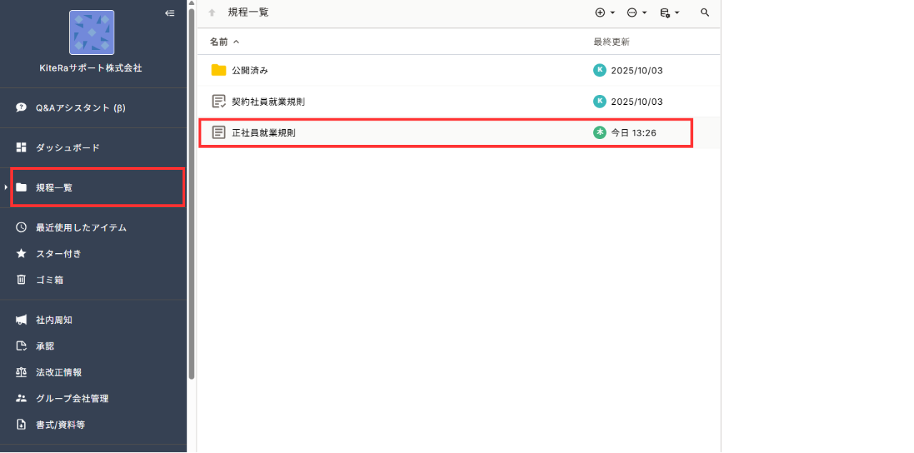 1. 規程一覧画面でコメント/注釈を確認したい規程をダブルクリックし開く