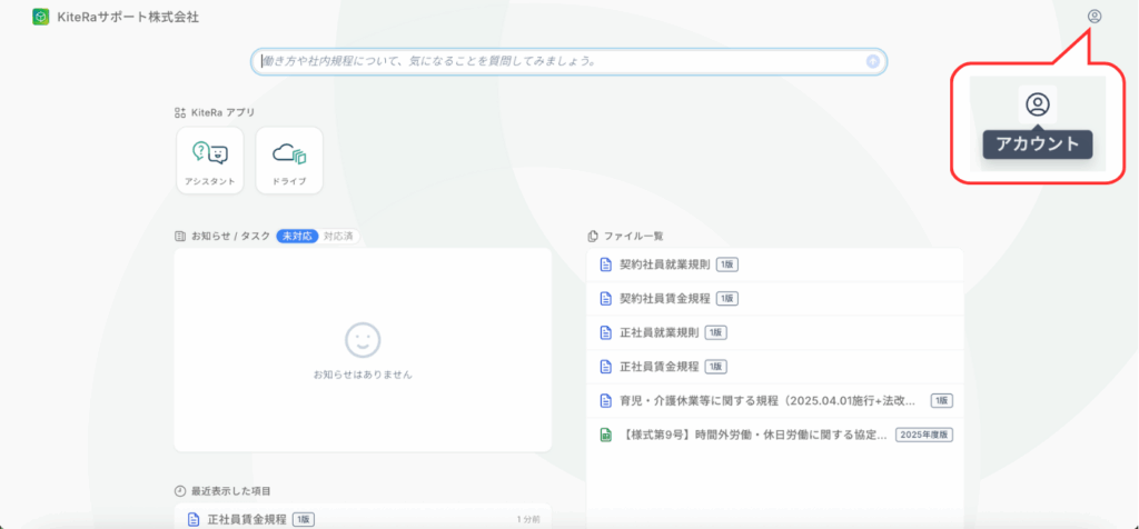 画面右上の人型ボタンをクリックし、[アカウント設定]を選択してください。