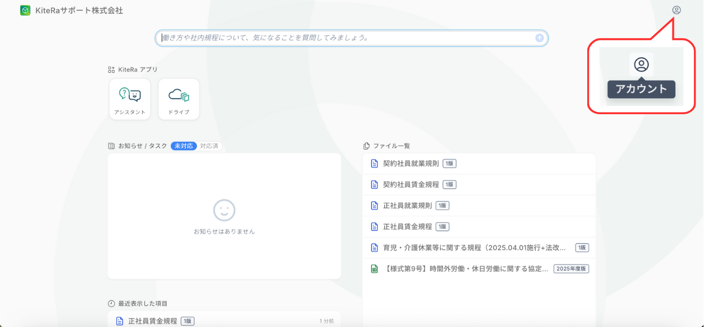 画面右上の人型ボタンをクリックし、[アカウント設定]を選択してください。
