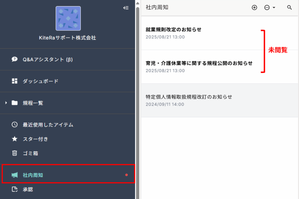 社内周知機能にて、閲覧済みと未閲覧がわかるよう仕様変更を行いました。