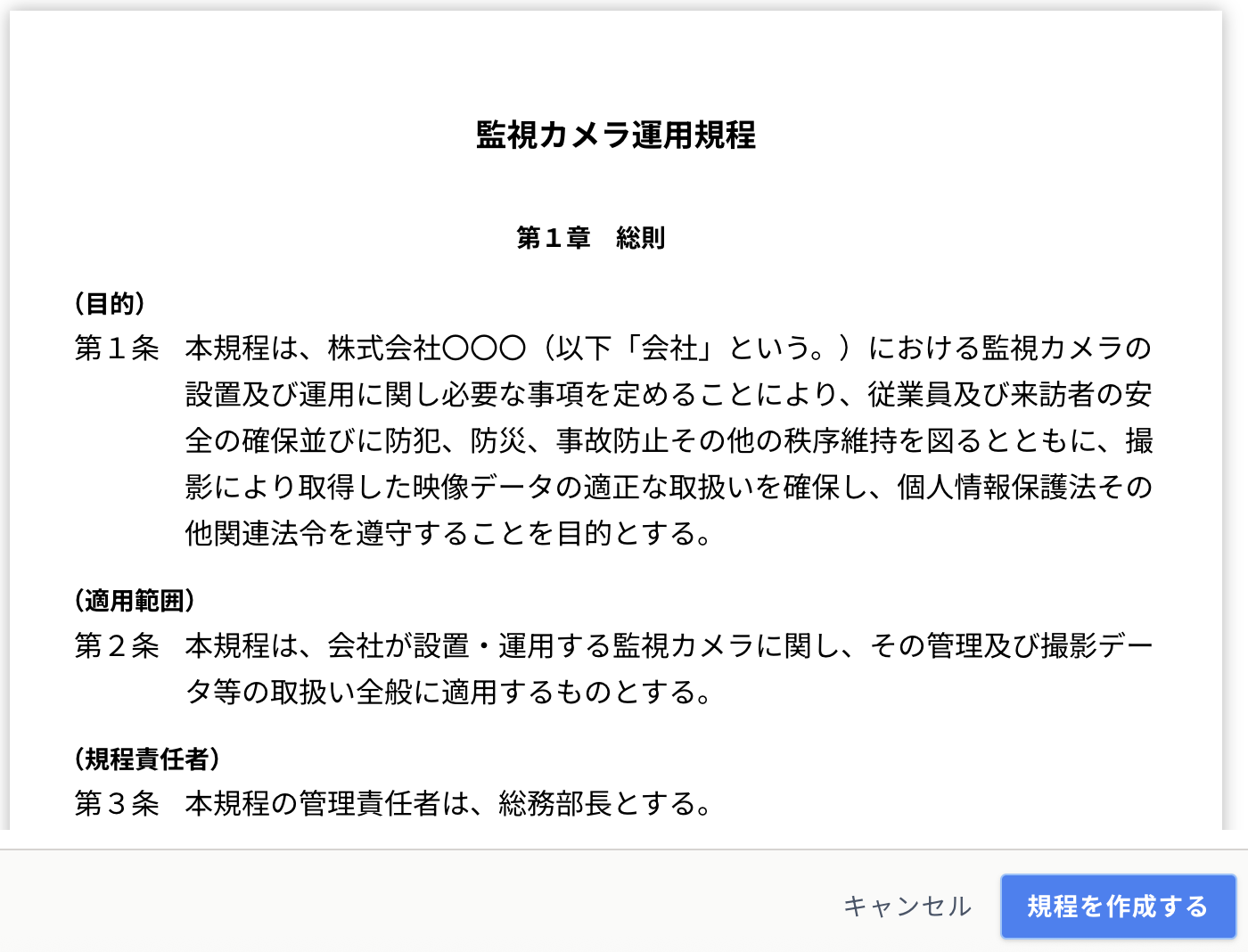 本規程は、従来の監視カメラに加え、近年普及が進む「顔識別機能付きカメラシステム」にも対応した雛形です。