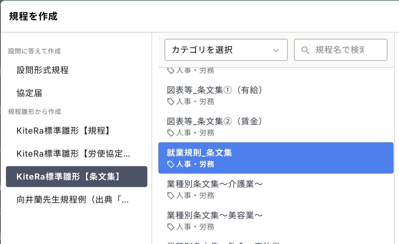 KiteRa規程雛形を新たに追加し、KiteRa標準雛形【就業規則_条文集】を拡充しました