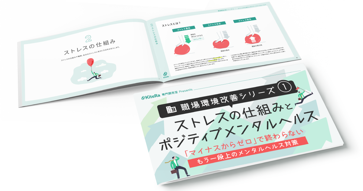 KiteRa専門開発室では資料集:職場環境改善シリーズ① として『ストレスの仕組みとポジティブメンタルヘルス』を公開しました。
