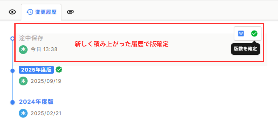 2.新しく積み上がった履歴で版確定をして、改めて申請する