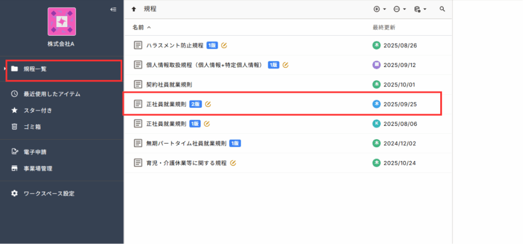 このページでは規程一覧で保存している規程の編集画面の開き方をご案内します。