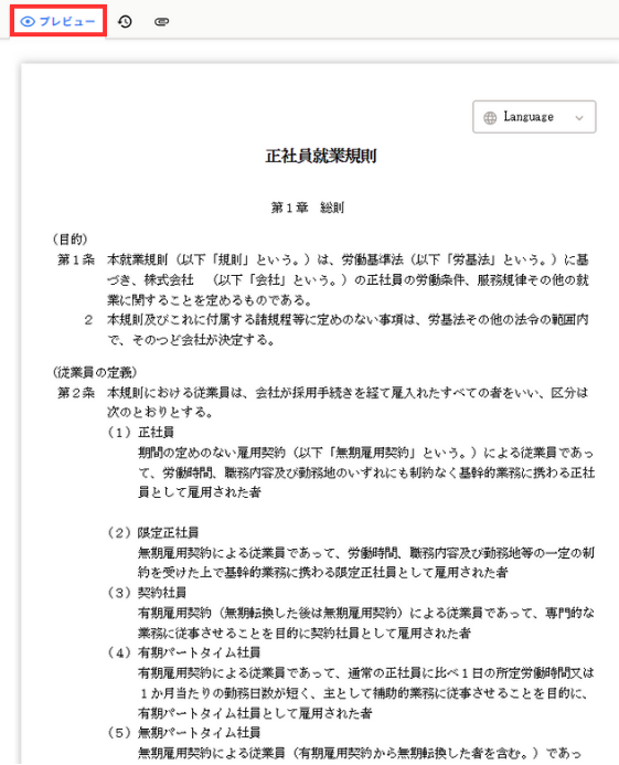 「プレビュー」タブで規程のプレビューを開くことができます。