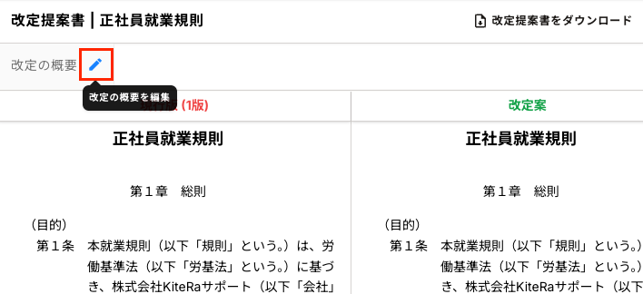 2.[改定の概要を編集][備考を追加]などを適宜クリックし、内容を編集