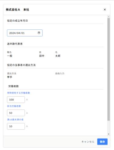 ※協定届の[過半数労働組合]または[過半数代表者]は、事業場管理にて登録した内容が自動反映されます。