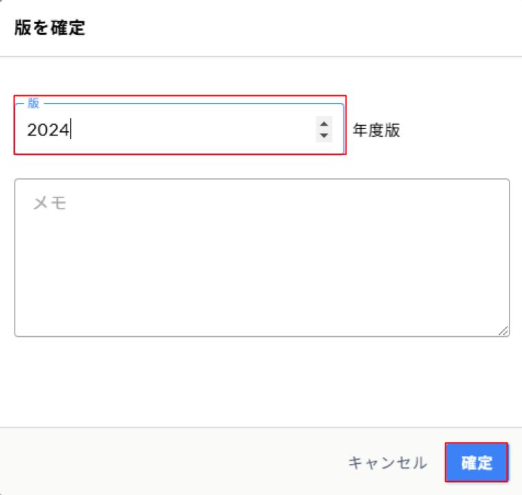 3. 版確定画面で、確定する版の年度が合っているか確認