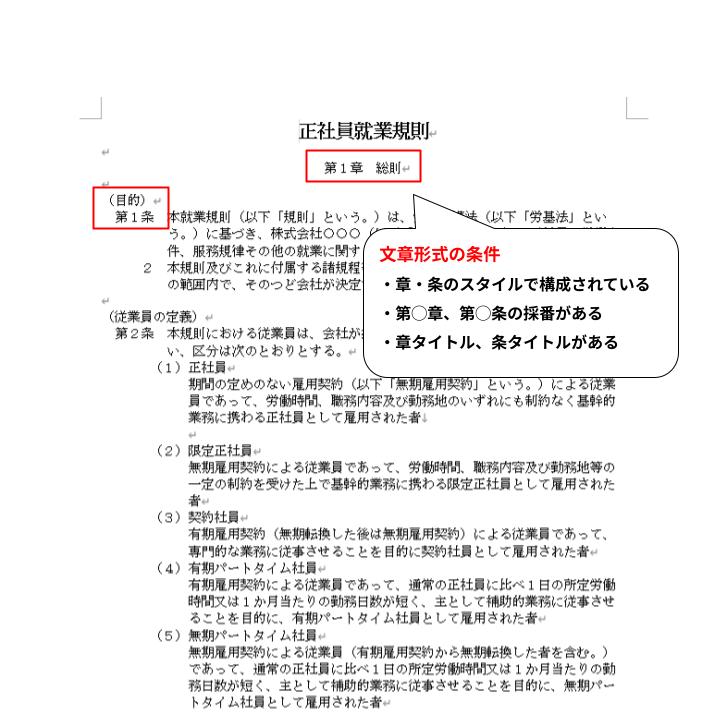 ・規程形式(条・項・号の形式で構成されている)かつ、条の採番・タイトルがあるもの
