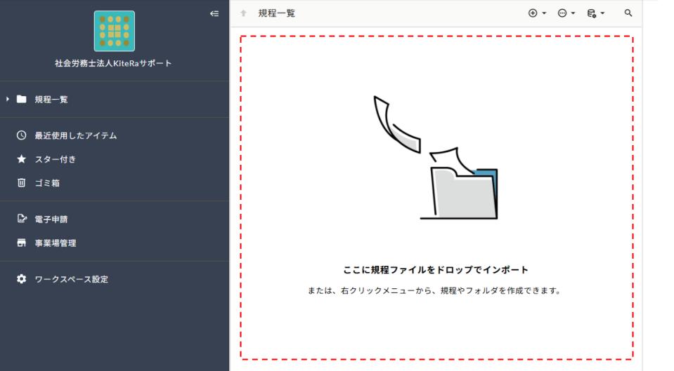 1. 規程一覧に、パソコン内の規程ファイルをドラッグ&ドロップする