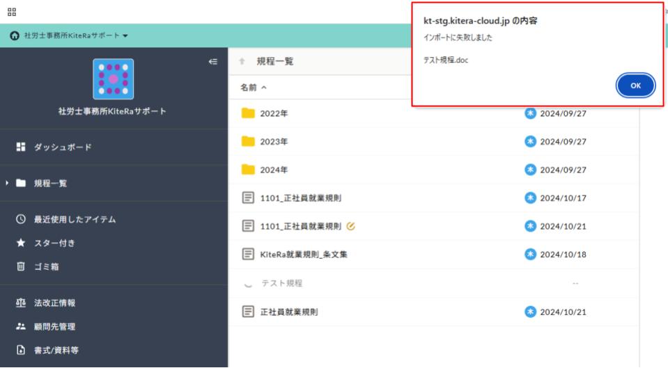 2. 規程一覧に取り込みたい規程が追加されたら、インポート完了