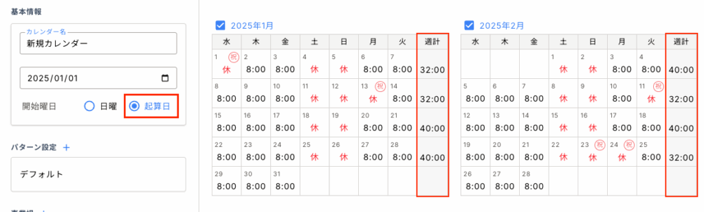Q.1年変形カレンダーで労働時間の週計を表示したいです。どうしたらいいですか?