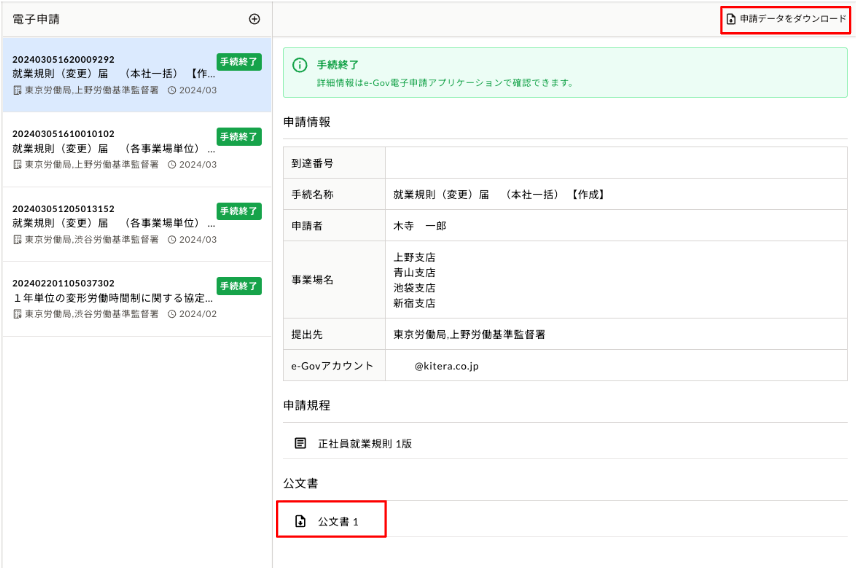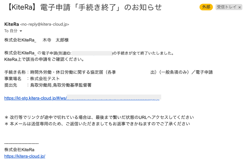 手続きが完了すると、電子申請を行ったユーザーのみにメールが届きます。