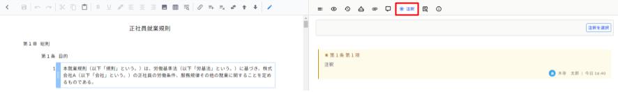 コメント/注釈は、規程の条文にテキストを入力できる機能です。
