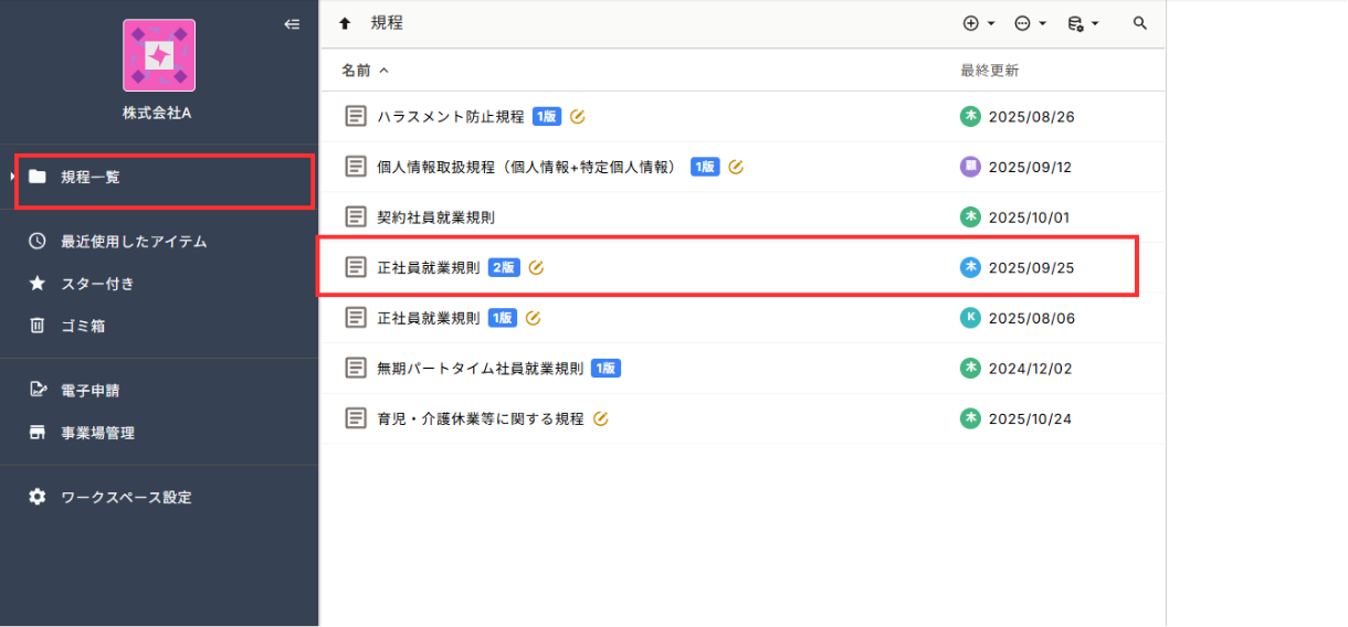 1. 規程一覧画面でコメント/注釈を確認したい規程をダブルクリックし開く