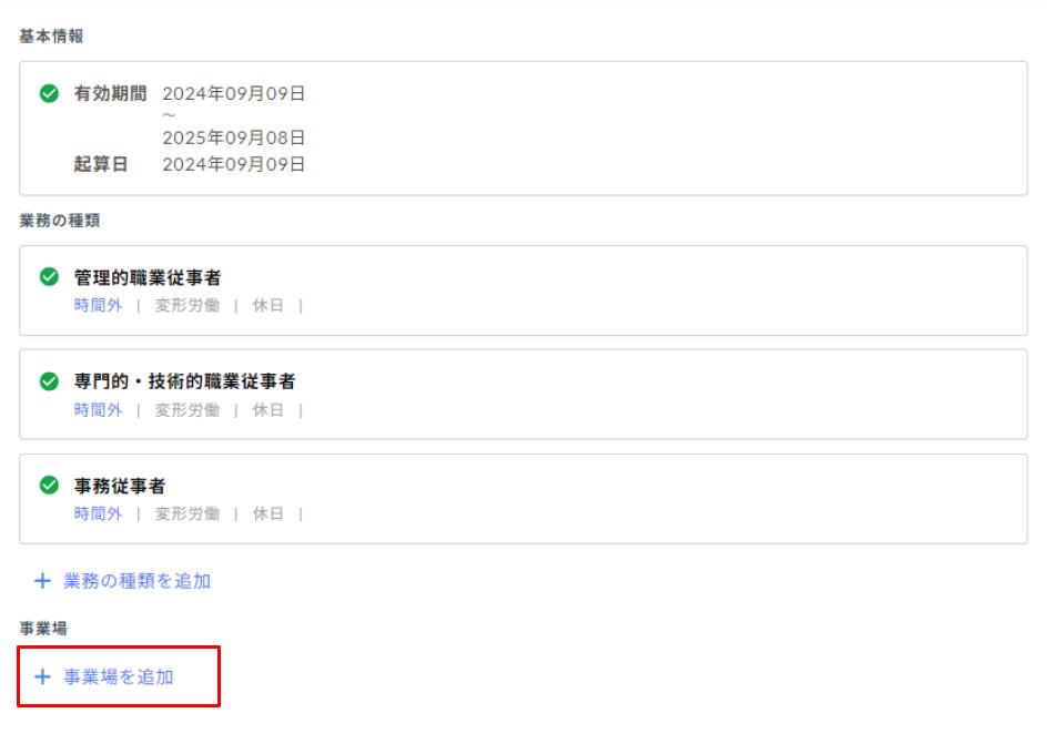1. 編集画面左側にて、[+事業場を追加]をクリック