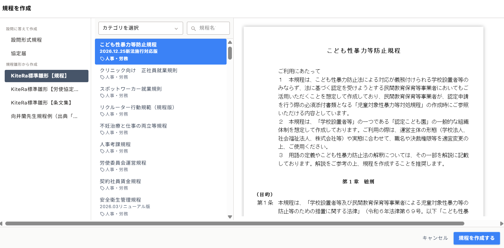KiteRa規程雛形を新たに追加するとともに、条文集を拡充しました