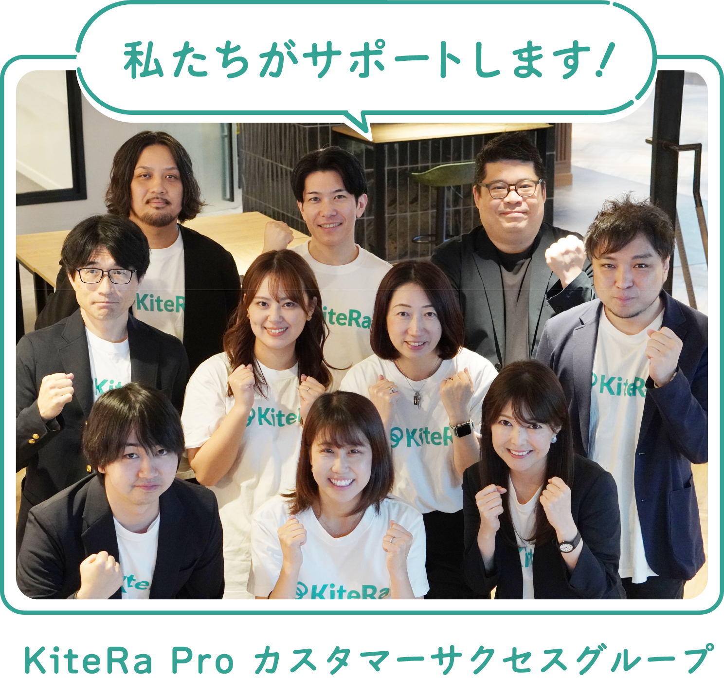「KiteRaを導入したけど・・どうしたらいいかわからない」という方も、KiteRa Proカスタマーサクセスのメンバーが丁寧にサポートいたしますのでご安心ください。